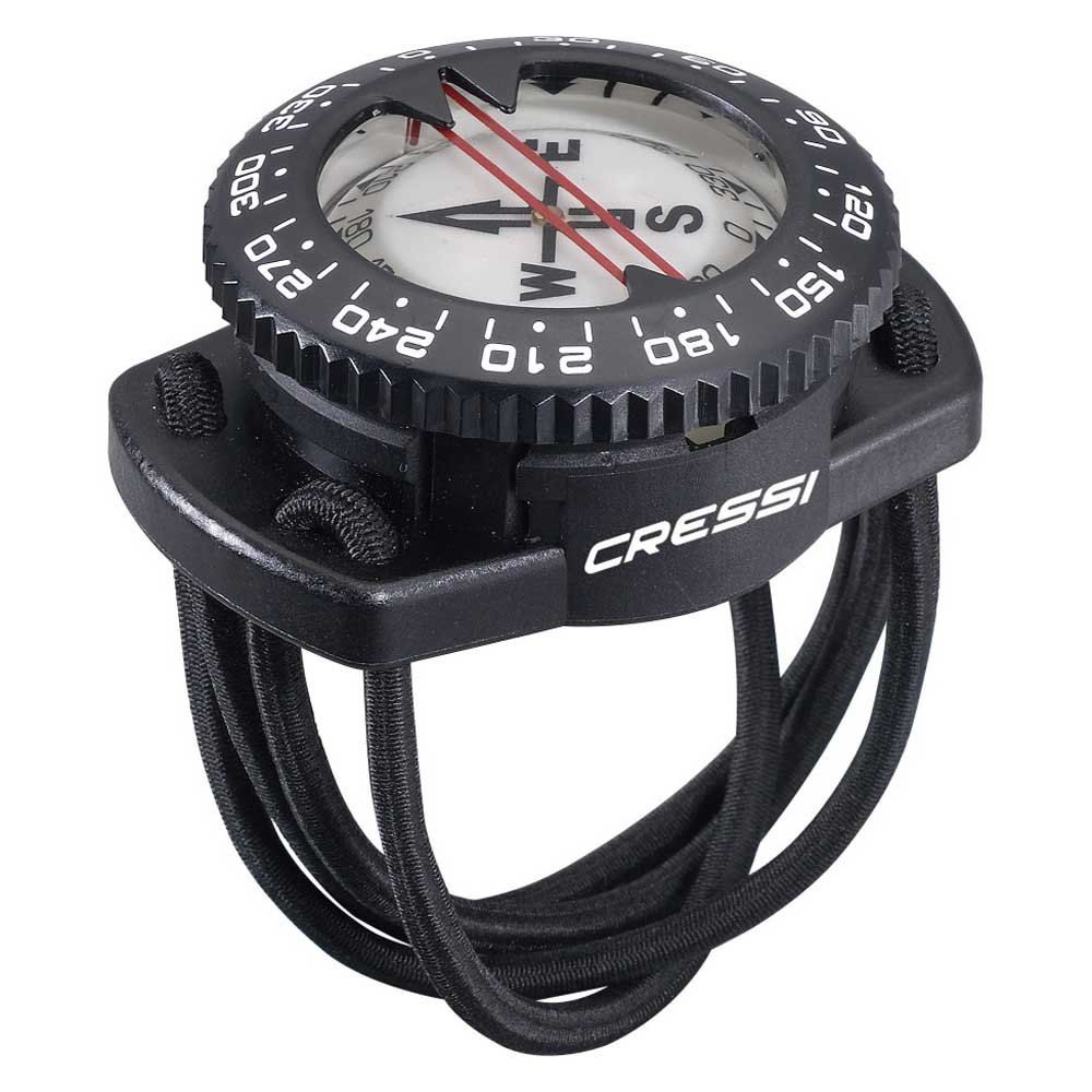 El compás de muñeca Cressi es un moderno instrumento que permite fáciles lecturas en cualquier condición. El plato magnético, sobre el cual está insertada la rosa de los vientos, comprende la posibilidad de un amplio modo basculante en todas direcciones, con el fin que la lectura resulte segura incluso si el instrumento no está perfectamente horizontal.