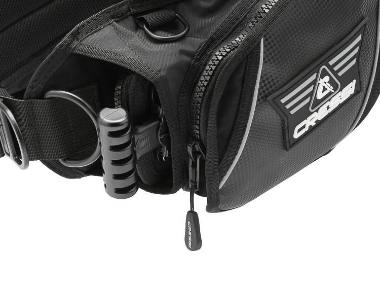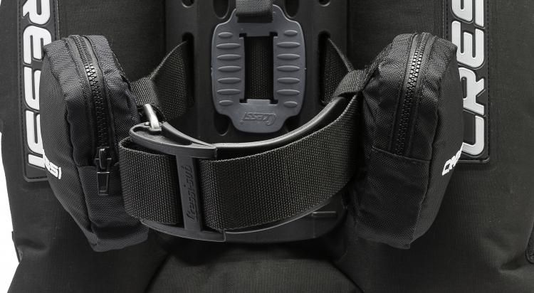 La cámara de aire dorsal aporta la mayor capacidad ascensional de toda la gama Cressi (19,4 kg talla M) pero con un volumen exterior de estiba siempre contenido, gracias a los tensores elásticos de contención que tienen como misión adicional facilitar la maniobra de vaciado.