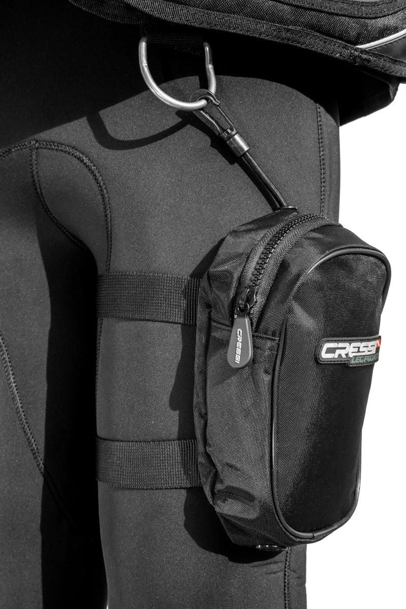 Bolsillo portaobjetos para fijación lateral en el muslo. Permite o bien suplementar los bolsillos del chaleco o sustituirlos en caso de chalecos de alas o por simple facilidad de acceso.