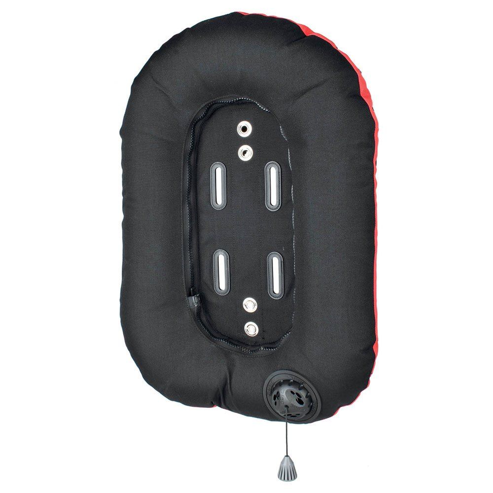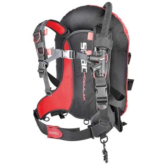 El equipo básico de Seac Modular incluye: arnés con correas de hombro desmontables y respaldo suave con núcleo de acero extraíble, saco equilibrador en formato Donut de 13,5 litros de capacidad, 2 bolsillos para lastre de liberación rápida, anillo en D y hebilla de aluminio anodizado ventral