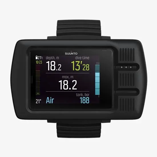 - Integración de aire inalámbrica: opcional (hasta 8 botellas distintas con Suunto Tank POD)